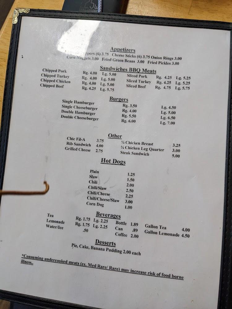 For those looking for lighter fare, salads and kid meals round out the options. The side dishes offer a delightful complement, with favorites like potato salad and coleslaw available. Desserts are a treat, offering sweet endings that many guests enjoy. With prices averaging around $4, this place assures satisfaction for every budget.